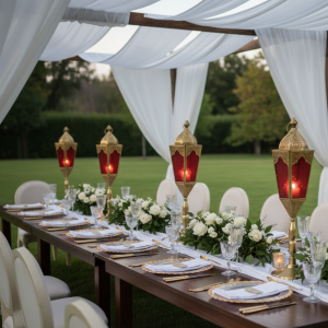 Ramadan décor focuses on warmth, spirituality, and ambience. Soft lighting, lanterns, and candle holders create a peaceful atmosphere for Iftar and Suhoor gatherings.
