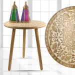 Our side table is made of natural wood material, weather-resistant. Its construction can hold up to 50 lbs.This beautiful wooden end table is meticulously carved to enhance the aesthetic of any living room or small bedroom, making it an essential addition to your home decor. Crafted from high-quality wood, this nightstand showcases a stunning design that adds warmth and character to your space.Designed with three sturdy legs, this round nightstand offers stability while maintaining a lightweight profile. Its compact size makes it an ideal choice for small bedrooms, apartments, or cozy living rooms where space is at a premium. Whether you need a bedside table to hold your lamp and alarm clock or an accent table for your sofa, this versatile piece adapts to your needs with ease.The intricately carved details not only enhance its visual appeal but also provide a tactile experience, making it a standout feature in any room. Use it to showcase decorative items, books, or personal treasures, and enjoy the perfect combination of elegance and practicality. The round shape allows for easy access from all angles, ensuring that your essentials are always within reach.This wooden nightstand is more than just a functional piece; it?s a statement of style that complements various decor themes, from rustic and farmhouse to modern and contemporary. With its timeless design, it will seamlessly blend into your existing decor while providing a touch of sophistication.Change your home environment with our Round 3-Legged Nightstand. Perfect for any room, this carved wooden table is designed to enhance both functionality and style. Experience the perfect balance of beauty and practicality in your living space with this stunning bedside table.